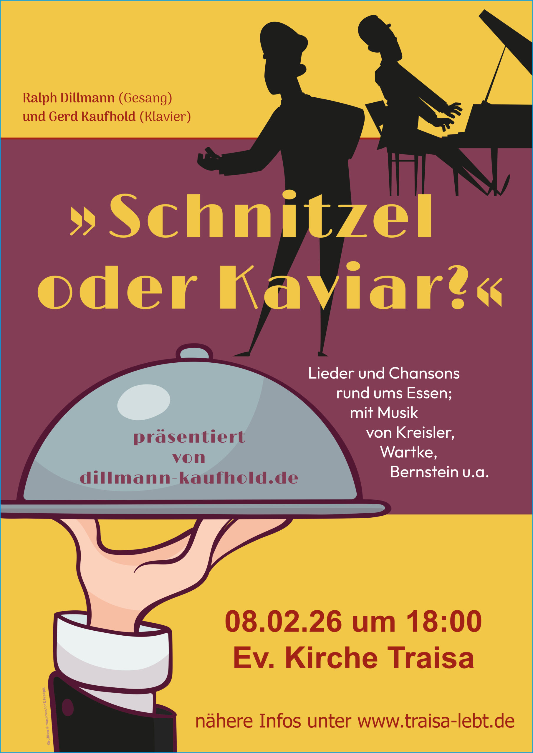 Schnitzel oder Kaviar? Lieder und Chansons von Kreisler, Leopoldi, Wartke, Bernstein u.a. rund ums Essen Jeder/Jede tut es, jeder mag es, manche vielleicht ein bisschen zu viel…. Nach dem großen Erfolg des letzten Programmes „Sind Sie Knie oder Hüfte?“ wendet …