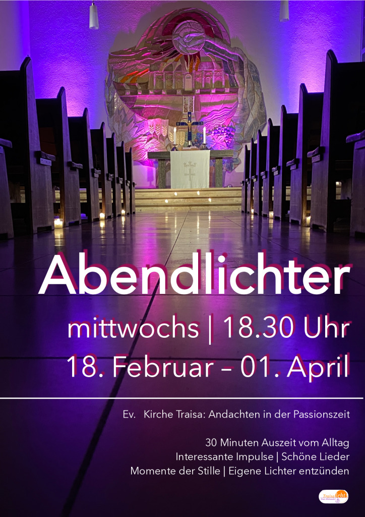 Bald starten wieder unsere ABENDLICHTER. 7 Wochen. 30 Minuten. Stimmungsvoll. Alle Termine: 18.02. | 25.02. | 04.03. | 11.03. | 18.03. | 24.03. | 01.04.
