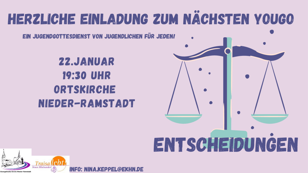Am 22.01.26 ist wieder YouGo – der Jugendgottesdienst VON Jugendlichen FÜR alle. Mit moderner Musik und Band. Diesmal wird es INTERAKTIV, da wir im Gottesdienst gemeinsam Entscheidungen treffen werden. Los geht es um 19.30 Uhr